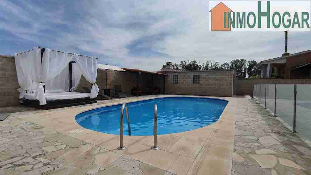 Calefacción de gasoil y CHIMENEA de leña conectada a los radiadores de toda la casa. Dispone de una amplia zona de jardín con piscina, terrazas barbacoa, sauna, Jacuzzi, riego automático, pozo